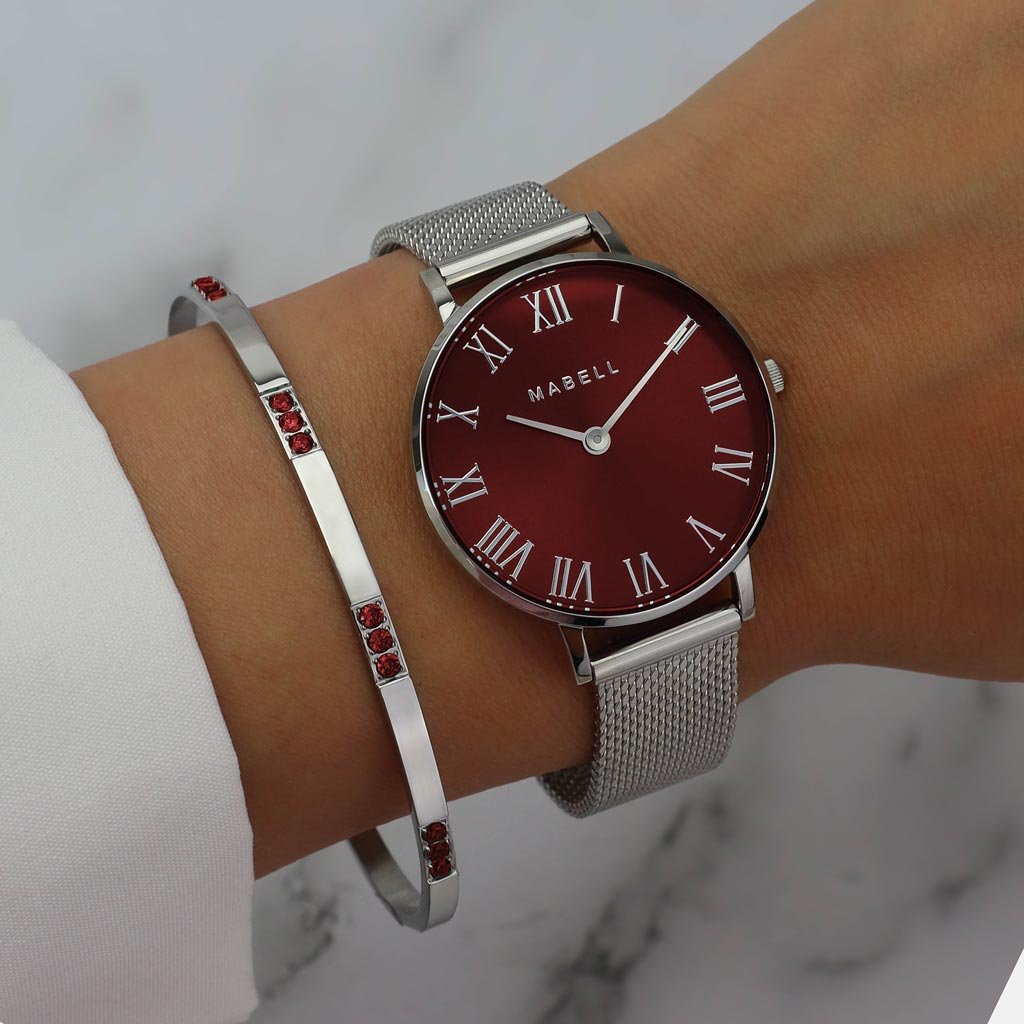 Set hodiniek a náramku z chirurgickej ocele Royal - Silver/Red